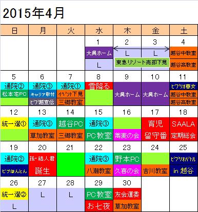 越谷以外の教室は(18:00-20:00)勤務 越谷の教室は中学生(14:00-16:00)勤務 高校生(17:00-20:00)勤務 Lは、みなかみ町赤谷にて田舎暮らし ビブリオバトルは、普及委員として活動 通院→@内科A皮膚科B歯科C接骨院D耳鼻科